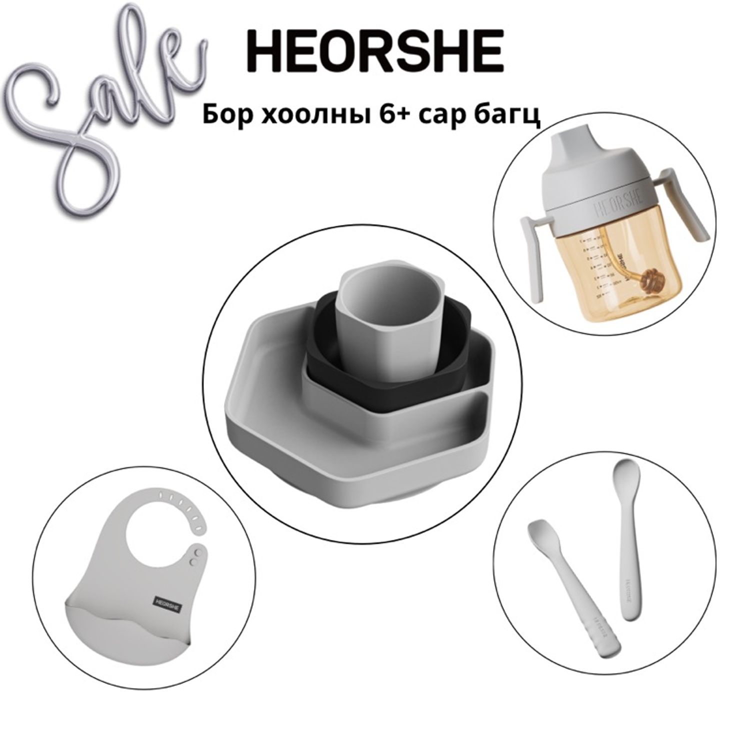 Бор хоолонд ороход зориулсан 6+сар багц 1. Силикон 3 хос хоолны аяга таваг 2. Соруултай хүндрүүлэгчтэй аяга 210мл 3. Силикон энгэрэвч 4. Силикон уян халбаганы сэт